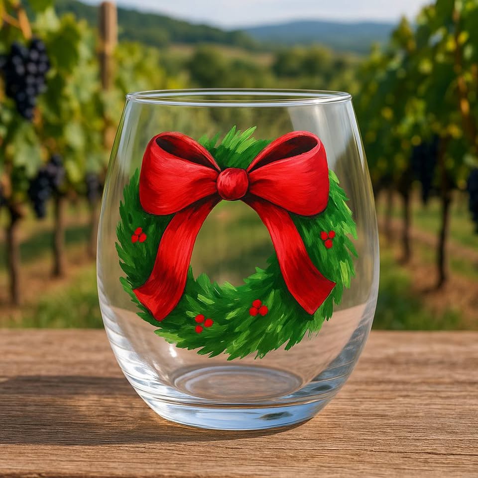 oin us for a fun and creative evening at Landon Winery Greenville! An Art Host from How Great Thou Art will guide you through painting your very own pre-sketched wine glass — choose between a stemless or traditional glass, each featuring a festive Bow Wreath design perfect for the holiday season.