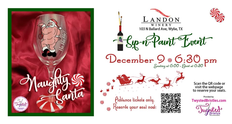 oin us at Landon Winery in Wylie for a delightful SIP & PAINT Experience ~ Naughty Santa is BACK!