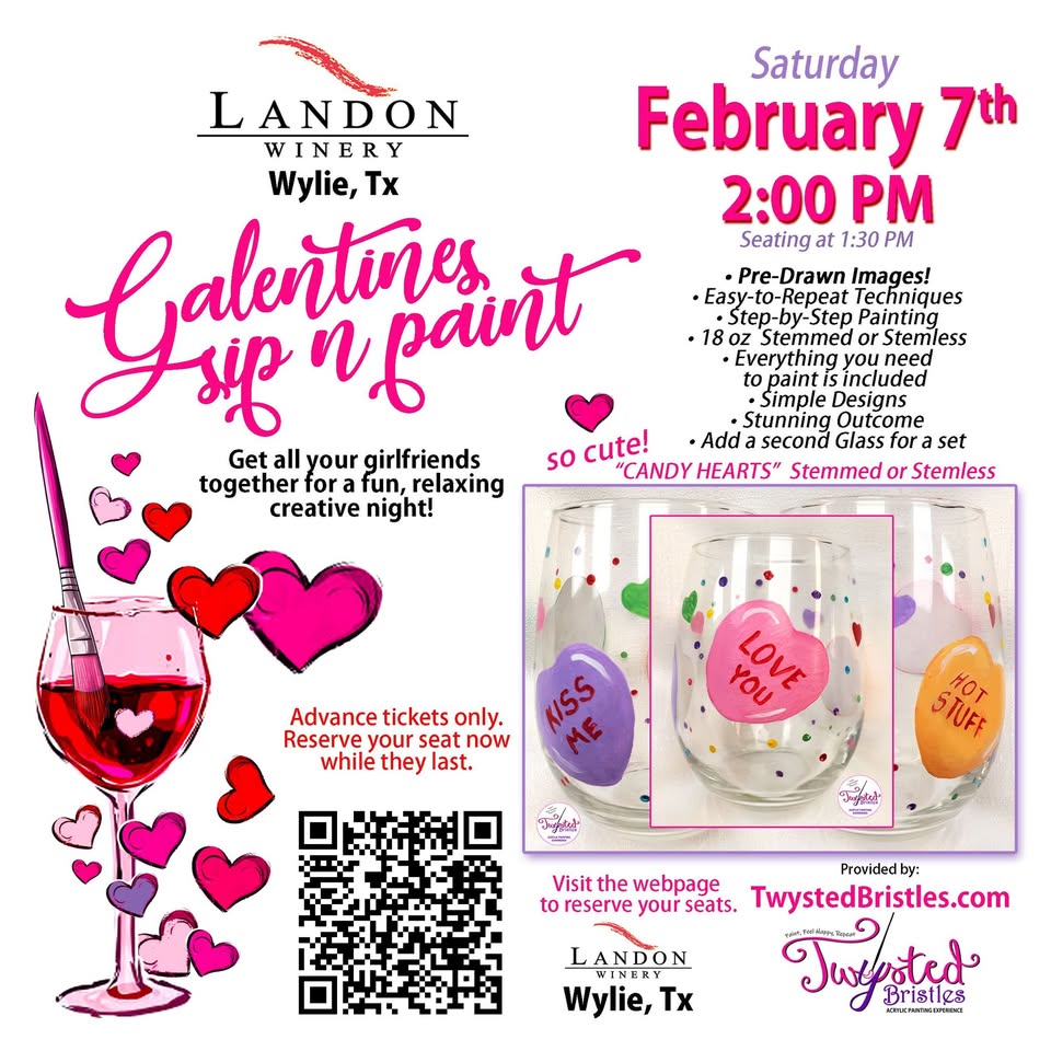 Gather your gals and join us at Landon Winery McKinney for a delightful sip and glass paint experience.